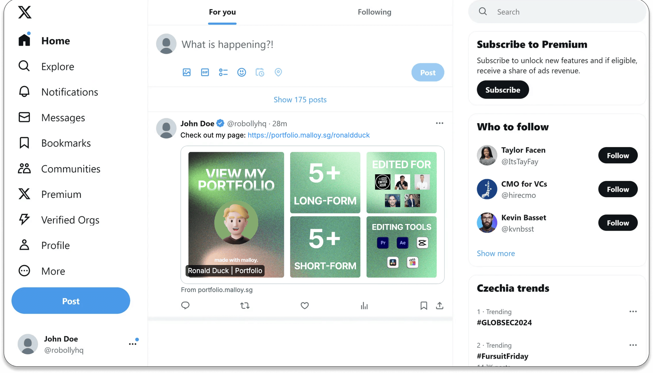 Use a clean Malloy link or add your own domain to build authority and stand out in a sea of freelancers.