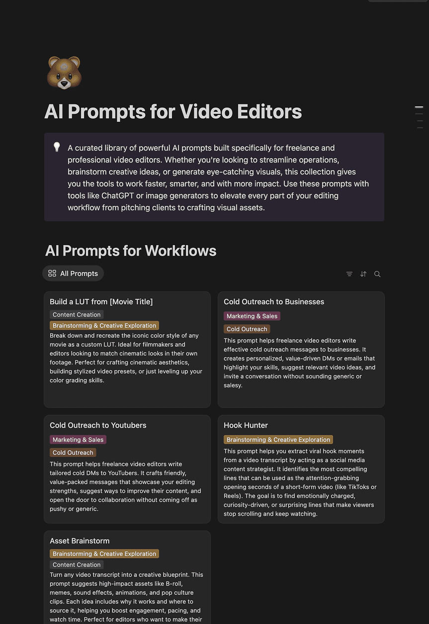 Speed up your workflow with Pro-only AI prompts for pitching, editing, outreach, and visual asset creation.