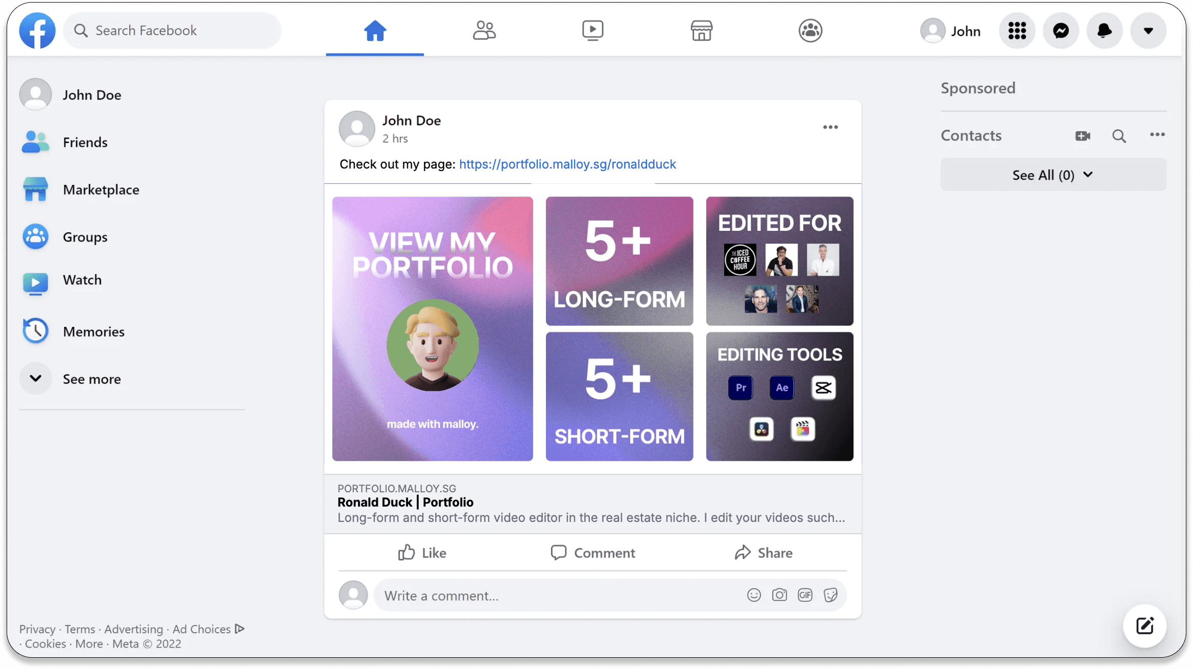 Malloy auto-generates a social card that makes your portfolio stand out so clients click your link, not someone else’s.